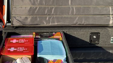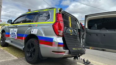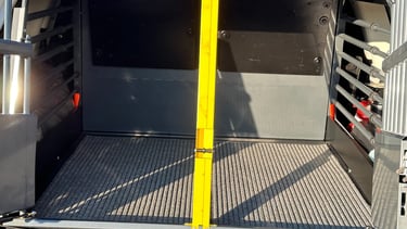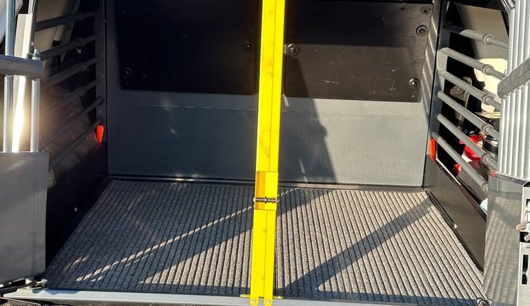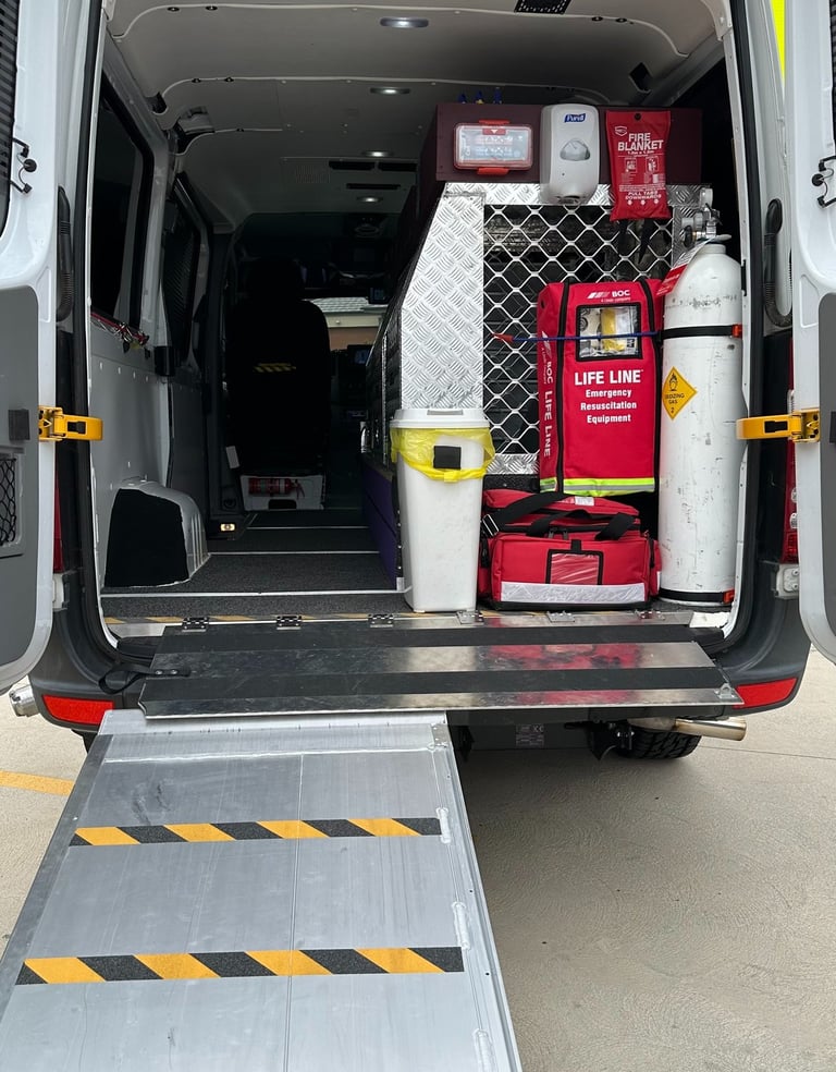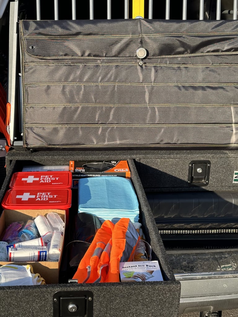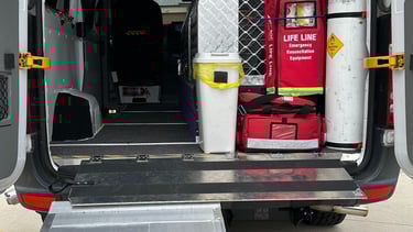 The hydraulic lift on the back of the main ambulance is capable of holding 600kg, it is used for larger breeds of dogs who are unwell or lame. Little did we realise how important it would become to some of our patients and their owners.
